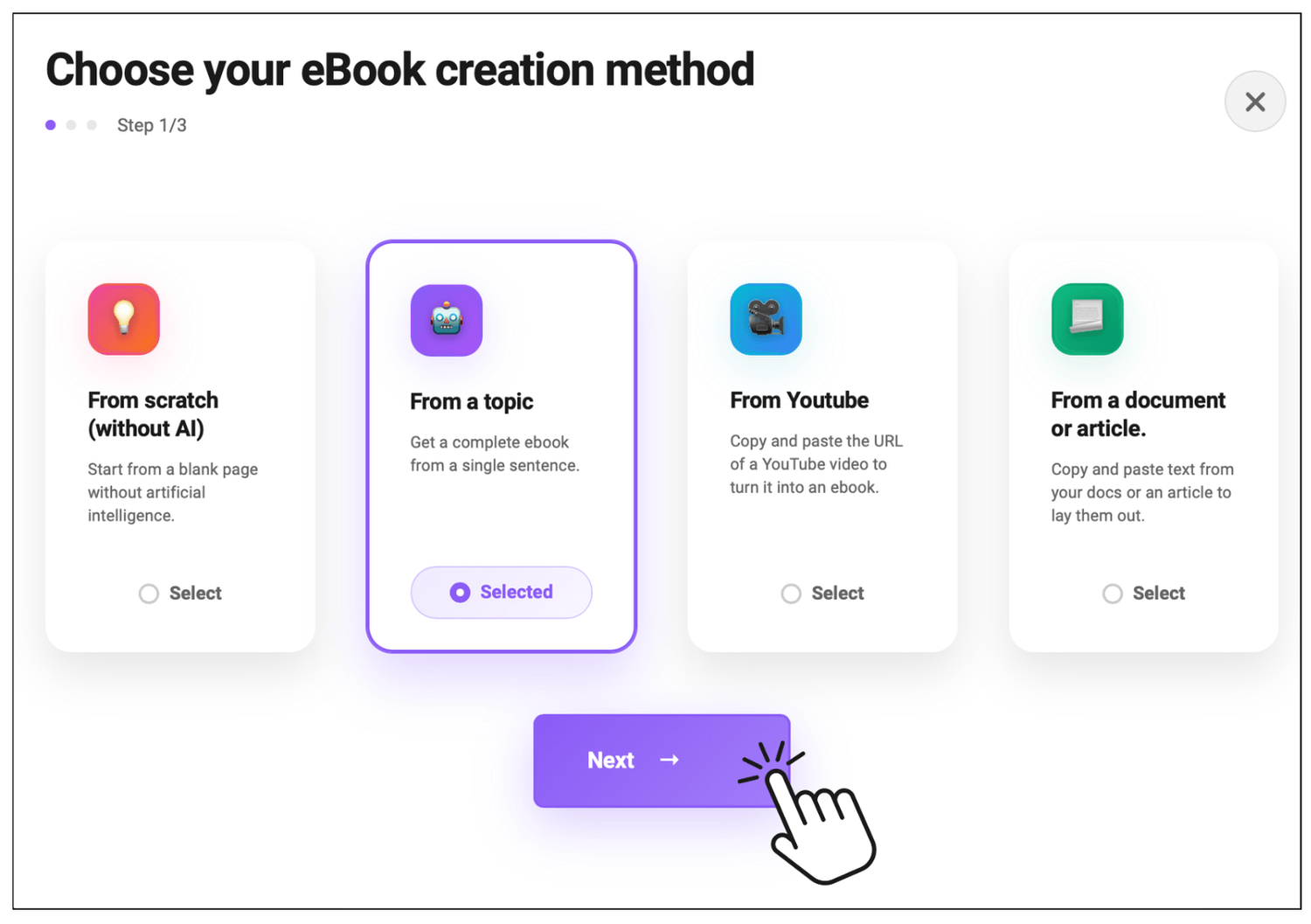 Create captivating eBooks in 3 minutes on any topic without writing a single word.