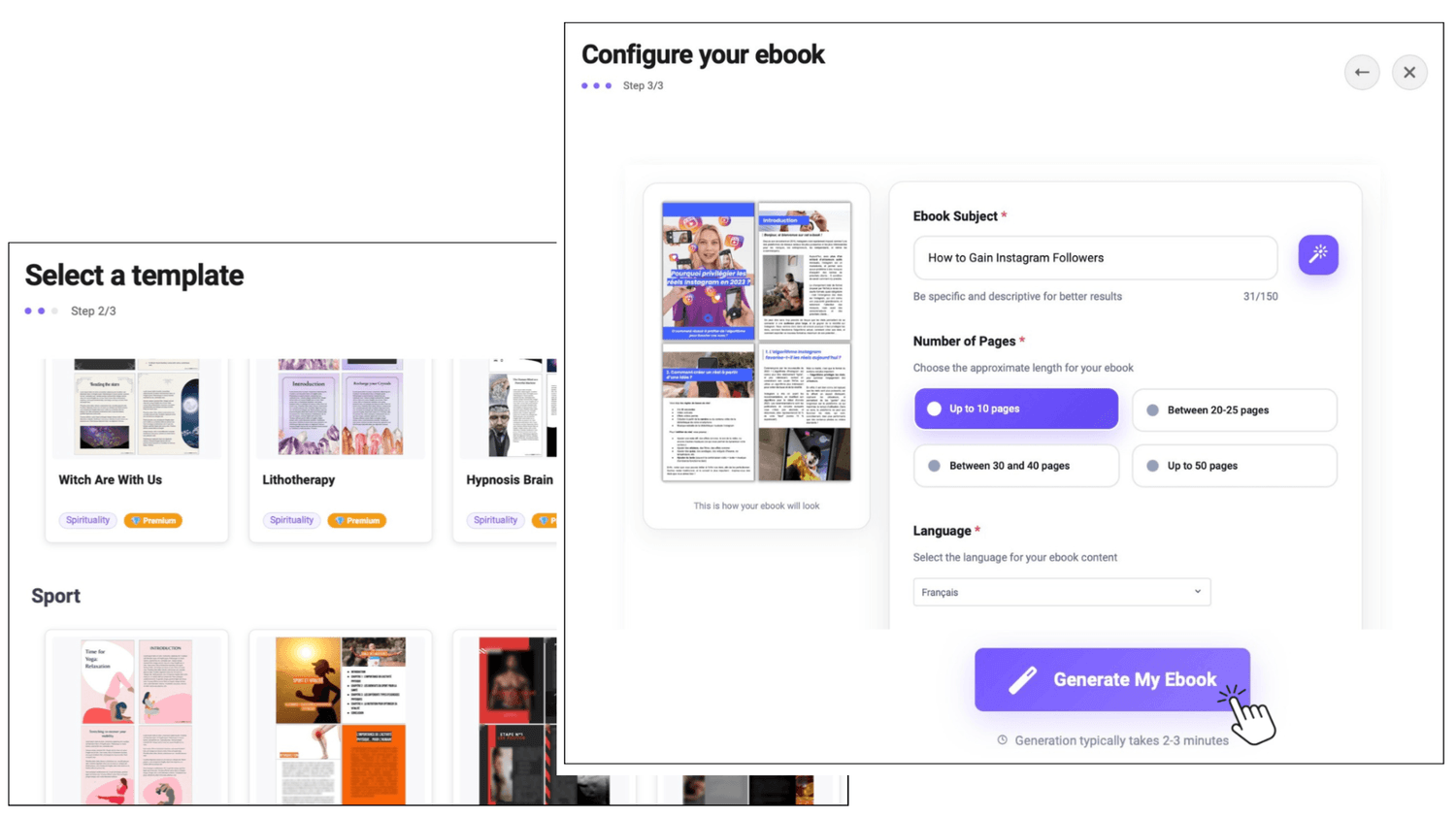 Your ebook in 3 minutes, including professional design and captivating writing.