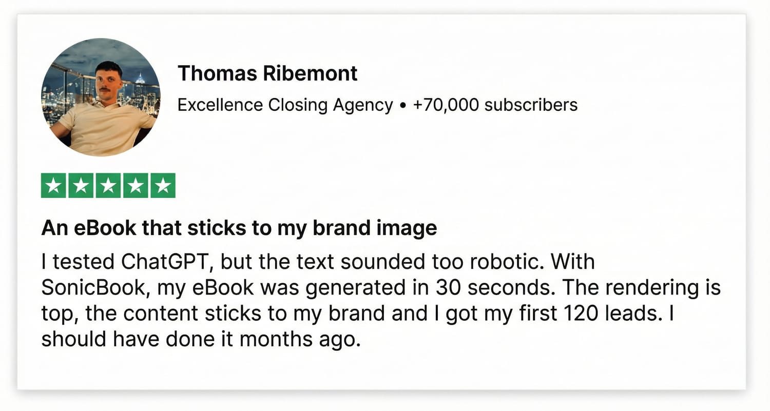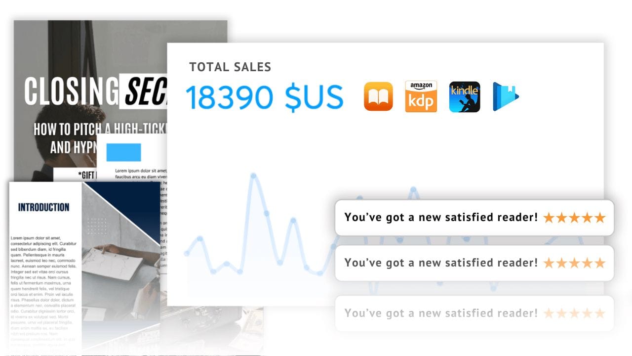 Publish in 1 click on any platform (83% of users generate their first $1,000 in 30 days with their eBook).