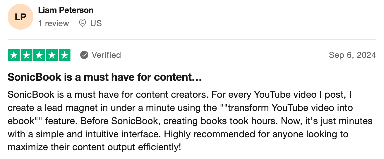 "You know I was searching for a way to bring in some extra income and SonicBook helped me to achieve it in a very simple way."
