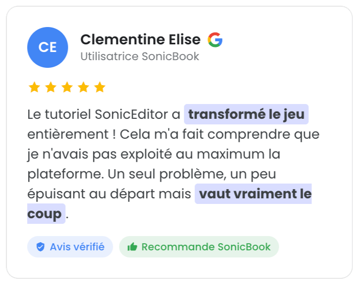 Accéder à SonicBook sur cette page, c'est y accéder à vie sans abonnement. Donc vous pouvez l'obtenir aujourd'hui, et l'utiliser plus tard. Car cette offre est disponible pendant une durée limitée. Si vous quittez cette page, elle risque de vous échapper. Donc obtenez SonicBook et vos cadeaux offerts maintenant pour pouvoir l'utiliser à vie sans frais supplémentaires.