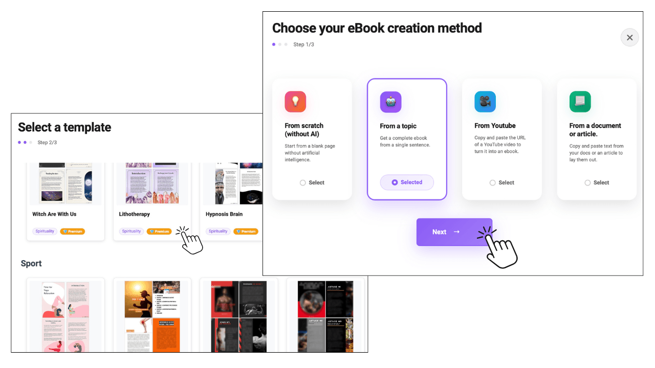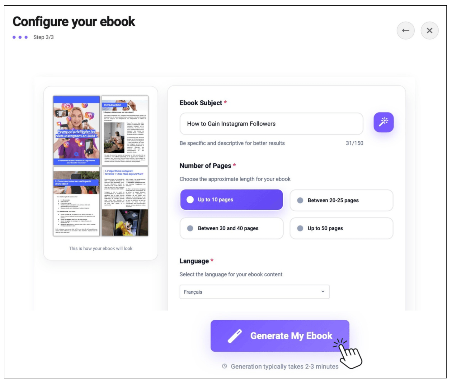 Créez des eBooks captivants en 3 minutes sur n'importe quel sujet sans rédiger un seul mot.