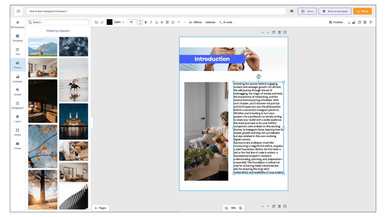 Importez n'importe quel article ou document pour automatiquement l'organiser et le mettre en page dans un design attractif.